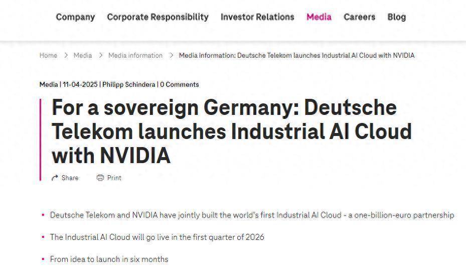 德国电信目前正与多家公司磋商,探讨共同参与建设所谓“AI超级工厂”的可能性。但整体进展依然缓慢,欧盟尚未明确如何评审投标及分配相关资金。