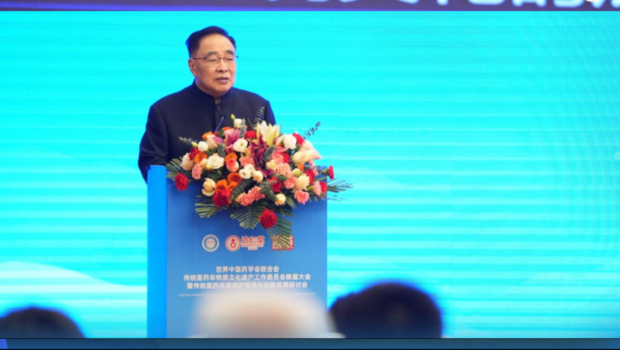 中国工程院院士、国医大师、世界中医药学会联合会副主席张伯礼在致辞中表示,传统医药类非遗的发展,“守正”是根本,“创新”是动力,而提高临床疗效是最终目标。他指出,传统医药与现代科技融合的重点在于运用科技手段提升药品质量、阐明科学内涵并提供有效证据。