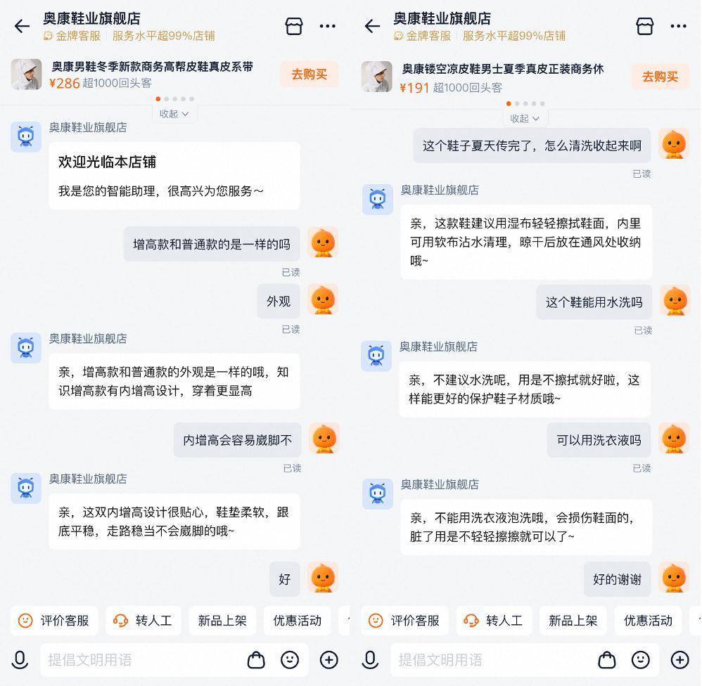 “老年人皮鞋尺码偏大吗?”“这款男鞋支持七天无理由退货吗?”——系统能自动调取商品知识库,用自然语言作出详尽解答。过去奥康每年双11都要增招上百名客服,如今靠现有团队与AI系统,便能轻松应对峰值流量。满意度从90%跃升至96%,投诉率下降两成。